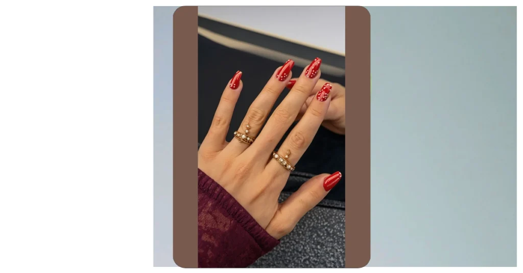 What makes these polka dot nails extra cool is how effortlessly they upgrade your look, whether you’re rocking a cozy sweater like the one in the picture (hello, comfy vibes!) or getting ready for something a bit fancier. They’re that perfect mix of timeless charm and playful personality that never goes out of style. Plus, who doesn’t love a good polka dot? It’s like a secret handshake for stylish people. So, if you’re looking for a fun, easy, and totally spot-on way to add some flair to your nails, these dotted beauties are definitely your next must-try!
