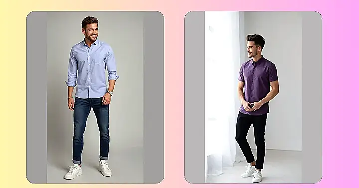 Think about it: this shirt isn’t just for looking good; it’s a multi-tasker. It’s polished enough that your parents would approve, but relaxed enough that you won’t feel like you’re wearing a costume. Plus, with those sleeves rolled up and sunglasses on, he looks ready for anything – maybe he’s off to grab a smoothie, ace a pop quiz, or simply enjoy the sunshine without squinting. It’s a great example of how a simple shirt outfit can give you that extra boost of confidence, helping you tackle your day with a smile, just like our friend here who seems pretty happy with his fashion choices!
