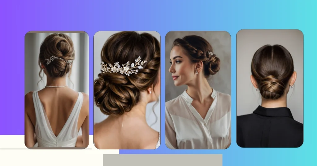 And let’s not forget the sleek and slick back looks that are perfect for the modern bride. Need a little shine? A touch of serum will take your bun from simple to stunning in no time! Whether you’re having a traditional ceremony or a more contemporary celebration, these hairstyles can be adapted to fit your wedding’s vibe.