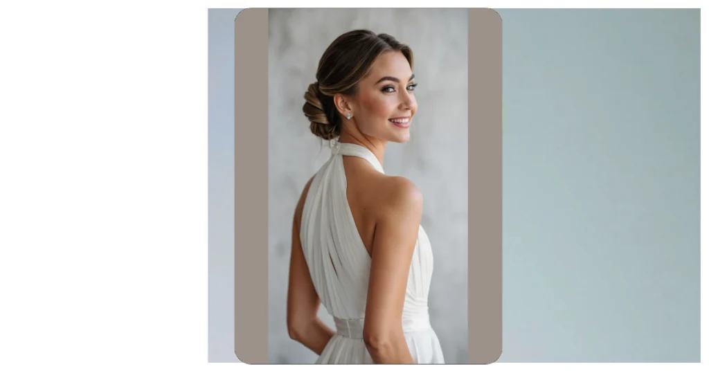 Plus, choosing a minimalist bun means your wedding photos will stay timeless, not just a throwback to a wild hair trend from a specific year. This sleek look, much like the one modeled beautifully here, says “I’m elegant, I’m confident, and I definitely didn’t need a team of stylists and a gallon of gel to achieve this perfection.” You’ll be able to dance, laugh, and celebrate without worrying about a single bobby pin rebelling. It’s the ultimate hack for looking effortlessly fabulous and staying comfortable while saying “I do!”