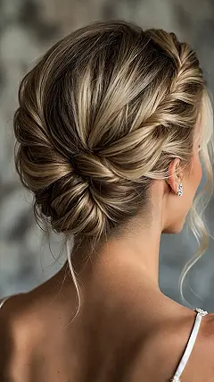 You know that feeling when you want your hair to look super fancy but also like you just woke up perfectly styled? That’s the vibe this soft French twist is serving! It’s like your hair decided to be a VIP at the wedding, effortlessly elegant without looking like it survived an epic hairspray battle. Those delicate braids woven in are like little secret pathways to looking absolutely gorgeous, making sure you get all the compliments without needing an instruction manual for your head. This style totally proves you can look like a total queen and still feel comfy enough to bust a move on the dance floor.