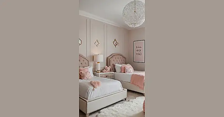 Stepping into this room feels less like a bedroom and more like a fluffy, pink paradise specifically designed for maximum chill and elegance. Check out those super fancy beds with the tufted headboards – they look ready for actual royalty, or at least someone who knows the importance of a really good nap. With pillows that are basically soft works of art and enough cozy details to make a cloud jealous, this place redefines ‘sleeping in style’ without even trying too hard.