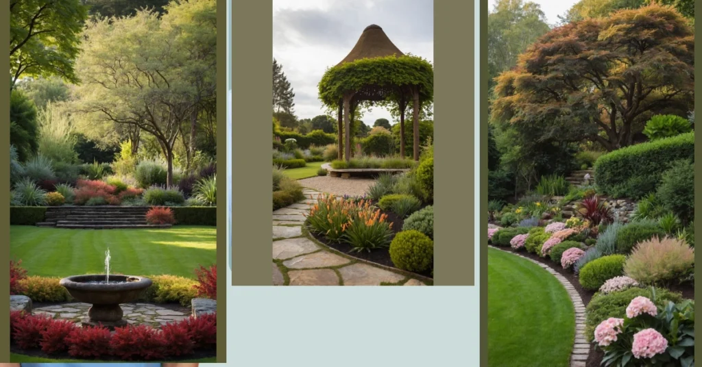 Looking closer, that massive, grand tree up top with its leaves showing off all the cool autumn shades truly looks like something straight out of a fantasy movie where an ancient wise tree holds all the secrets. Those stone steps winding their way up through the greenery? They’re practically begging you to explore and find a hidden spot to hang out, maybe with a good book or just to escape your annoying siblings for a bit. Having a garden like this at home would be a total game-changer, transforming your backyard into a personal sanctuary where the biggest decision you have to make is whether to relax on the grass or perch on those cool steps.