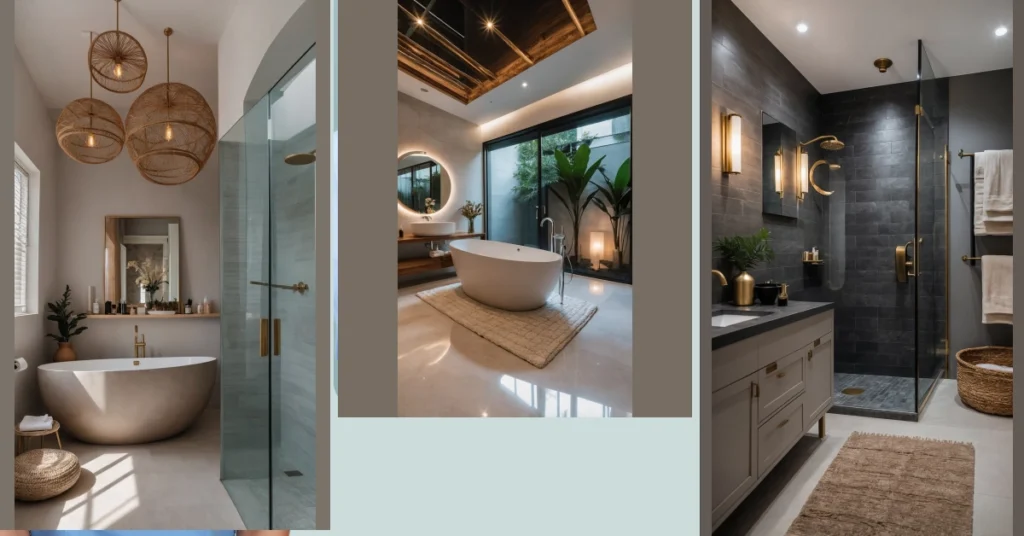 Forget those old, crusty bathrooms that make you feel like you’ve stepped into another century. This picture isn’t just a bathroom; it’s practically a five-star resort tucked into your home! Check out that epic, giant tub that looks like it could fit a whole team of rubber duckies, complete with a fancy gold faucet that probably makes the water sparkle. And those cool, woven lights hanging from the ceiling? They look like giant, stylish alien cocoons, giving off the perfect cozy glow. This isn’t just a place to brush your teeth; it’s where you go to escape the world, probably with a good book and maybe a snack you snuck in.