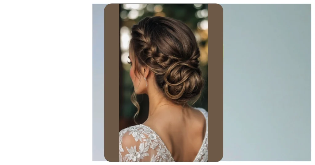Getting ready for a wedding as a bridesmaid means looking totally fabulous, but also being ready for anything – like chasing a runaway flower girl or dramatically catching the bouquet. This gorgeous updo, with its fancy braids artfully woven into a stylish bun, is basically your hair’s superhero costume for the big day! It keeps every strand perfectly in place, so you can dance like nobody’s watching without ending up with hair stuck to your lip gloss, all while showing off those sparkly earrings.