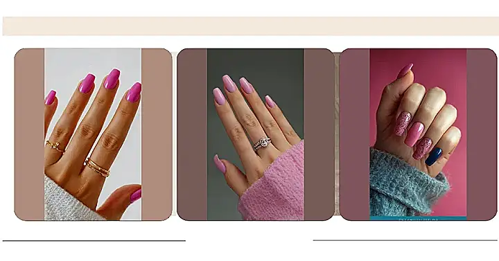 But wait, there’s more! These fabulous pink nails aren’t flying solo; they’ve brought their besties: some super cute, sparkly gold rings and a cozy white sweater. It’s the ultimate “I’m effortlessly chic but also ready to binge-watch my favorite show” vibe. Picture reaching for that popcorn with nails this popping and rings this shimmering – you’ll practically feel like royalty, or at least like you absolutely nailed that trend. So go ahead, let your hands do all the talking, because with a combo like this, they’ve got a lot to say!