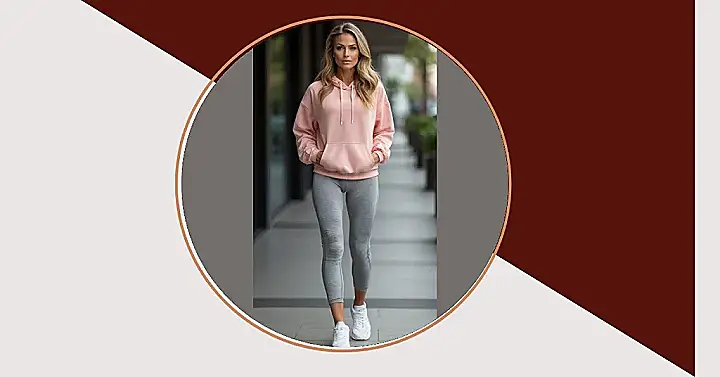 Check out this fantastic active wear combo! That soft pink hoodie is practically screaming ‘hug me,’ and it’s the kind of top that works whether you’re actually hitting the track or just sprinting to catch the last slice of pizza. Teamed up with comfy grey leggings and those crisp white sneakers, this outfit perfectly nails the ‘I’m effortlessly put-together but also might spontaneously do a cartwheel’ look. It’s the secret weapon for looking cool while feeling like you’re still in your PJs.