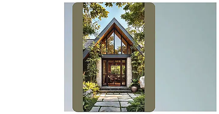 This house is so tropical, it probably sips a piña colada while you’re still deciding which socks to wear! With its awesome A-frame roof made of cool wooden shingles and a base of rugged stone, it looks like it grew right out of the jungle, but with way more Wi-Fi. Those giant glass windows mean you’d have the best seat in the house for watching palm trees sway – just imagine trying to ignore your chores when you’ve got a private nature show unfolding right in front of you. Seriously, this place is practically begging for a pool party, even if it’s just you and a giant inflatable flamingo.