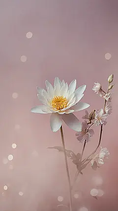 Looking for a wallpaper that screams ‘no stress allowed’? Feast your eyes on this! This epic white water lily and its cute pink flower pals look like they’re having the ultimate spa day. They’re so relaxed, they probably just finished a deep meditation session and are now just chilling, radiating pure zen vibes. Even the little light spots in the background seem to be tiny, happy bubbles floating by, adding to the whole ‘don’t worry, be flowery’ mood.