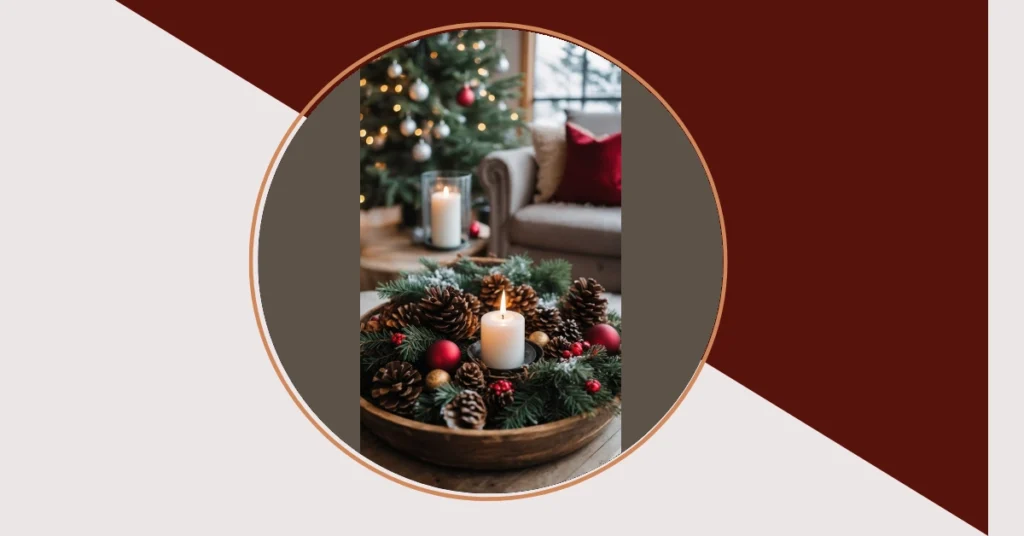 Who needs a magic wand when you’ve got creativity and a few spare pinecones? Turning your room into a cozy winter haven doesn’t require emptying your piggy bank or a trip to Santa’s workshop. Take a peek at that awesome centerpiece in the photo – all those rustic pinecones, fresh evergreen sprigs, and pops of red berries around a warm candle just scream ‘hygge vibes.’ You can totally whip up something similar, even if your craft skills usually involve gluing your fingers together. Just grab a wooden bowl (or any cool container), gather some natural treasures like pinecones and branches from outside, add a candle, and maybe some old ornaments. It’s decor that looks like a million bucks but only costs, like, your time and a quick scavenger hunt!