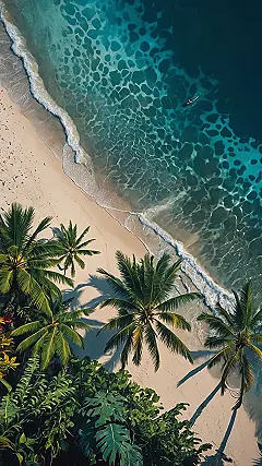 Staring at this view makes you want to trade your backpack for a beach towel, right? This picture of sunny sand and super-blue water is practically begging to be your escape route. And hey, while a real tropical getaway might be on hold, tropical wallpaper is here to save your boring walls! It’s the ultimate way to ditch the plain paint and feel like you’ve stepped onto a secluded island, all without leaving your comfy chair (or having to do actual push-ups in the sand).