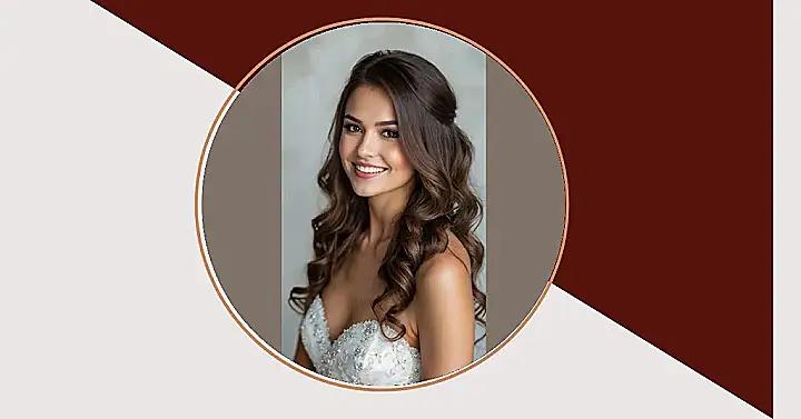 Get ready to fall head over heels for this autumn wedding hairstyle, because it’s basically what happens when elegance meets a really good hair day! Those gorgeous, bouncy curls with all their golden-brown highlights look just like the most perfect pile of autumn leaves, but way more organized and fancy. And that half-up style? It’s genius! It keeps those pretty strands out of your face for all the important stuff, like catching the bouquet or making sure you don’t trip while walking down the aisle, all while letting your stunning length shine.