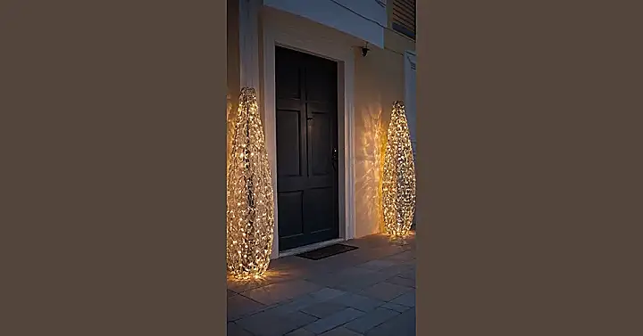 And let’s be real, who needs a boring old porch light when you can have these dramatic, shimmering towers guarding your home? They’re practically begging for compliments, like, “Hey, notice how fabulous we are, even on the coldest December night?” Plus, think about it: no more fumbling for your keys in the dark or accidentally stepping on that rogue garden gnome. These outdoor lights are here to make sure your entrance is always merry and bright, giving your house that extra bit of festive magic without having to untangle a single strand of string lights from last year’s box. Pure genius, if you ask us!