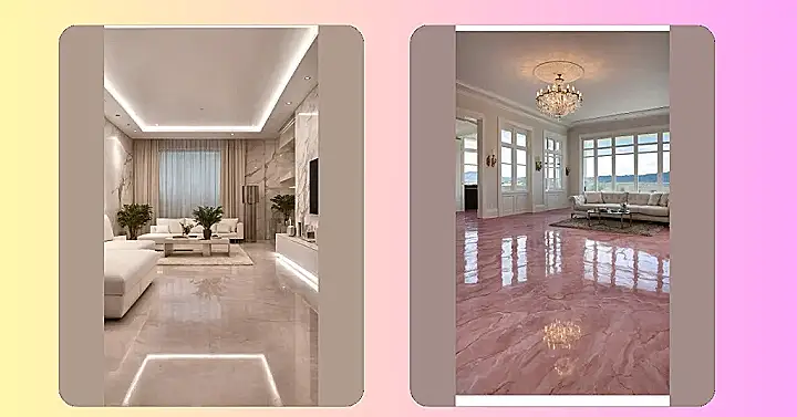 Take a peek at this room – isn’t that floor just ridiculously shiny? It’s so smooth and glossy you can practically see your future (and definitely that giant chandelier!) reflected perfectly, making the whole place feel super grand. This isn’t some rare, expensive stone you’re looking at; it’s the incredible magic of epoxy flooring, which basically turns your plain old floor into a custom masterpiece. It’s like giving your room a superhero cape, but for the floor, complete with a fantastic marbled pink design that’s way cooler than any school hallway.