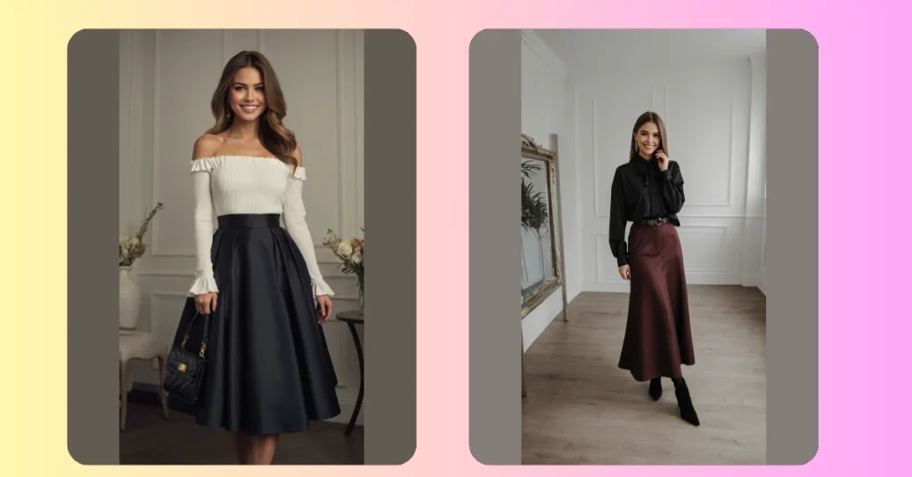 Finding the perfect holiday party outfit can sometimes feel like a mission to the moon, but this look totally nails it! That deep teal satin blouse? It practically screams “I’m festive and fabulous!” without even trying. Paired with that classy beige skirt, it’s a combo that’s elegant enough to impress your aunt, but cool enough to make your friends say, “Where did you get that?” You’ll be ready to snap some awesome selfies and maybe even try to sneak a few extra cookies when no one’s looking.