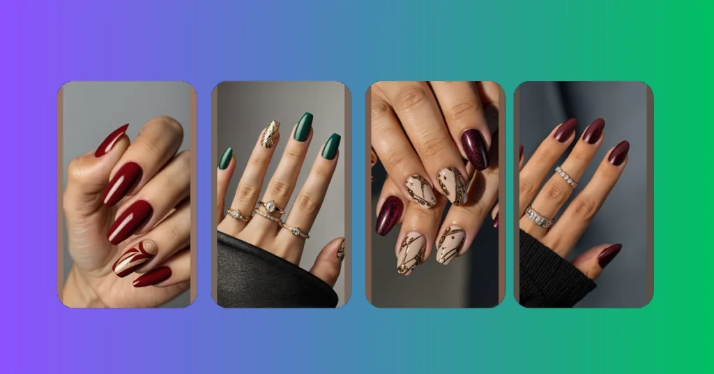 Get ready to absolutely slay the December holiday season with these dazzling nails! Those deep, sparkly burgundy nails are so glamorous, they might just outshine the twinkle lights on the Christmas tree itself. They’re practically screaming ‘hot cocoa by the fire’ and ‘unwrapping presents like a boss.’ With nails this fabulous, you won’t just be attending the holiday parties, you’ll be bringing all the festive vibes right to your fingertips, making everyone wonder where you got such a cool holiday glow-up.