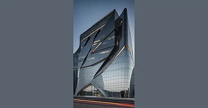 And just when you think you’ve figured it out, BOOM! There are these awesome jagged lines slicing through the glass, making it look like the building is either super dynamic or maybe just had a really enthusiastic fight with a giant invisible ninja. The way the light bounces off all those reflective surfaces, both curved and angular, means it changes its look depending on the time of day, almost like it’s got a whole wardrobe of outfits. It’s definitely not your average shoebox structure; this building is practically winking at you, inviting you to wonder what kind of futuristic magic is happening inside its dazzling, shapeshifting walls.