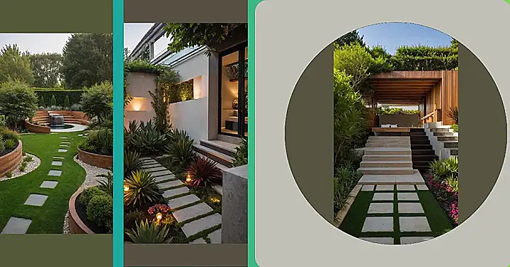 Think your backyard is tiny, like a postage stamp where even a gnome might feel cramped? Well, check out this super cool garden design that proves you don’t need acres of land to create something amazing! See how that snazzy path with the square stepping stones just says, “Come on in, adventure awaits!” It’s like your own personal red carpet, but way greener and without the paparazzi. Forget tripping over the lawnmower; this pathway is so neat, it practically begs you to stroll through, perhaps contemplating the mysteries of the universe or just wondering if you left your phone inside.
