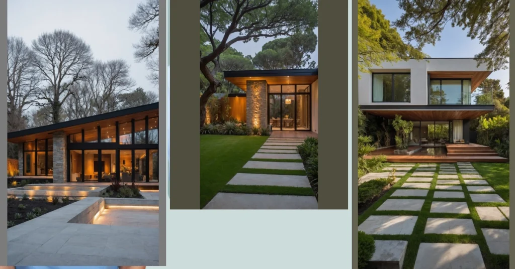 And just look at that yard! With the giant trees acting like VIP bodyguards and those stepping stones practically rolling out the red carpet, you’d feel like a celebrity just walking to the front door. The glowing lights make everything look super fancy, but in a “come as you are, maybe bring some pizza” kind of way. Imagine chilling in that dining room, surrounded by all that glass, feeling totally connected to nature without actually having to battle any mosquitoes. It’s the kind of place where you could do your homework looking out at a masterpiece, or pretend you’re hosting a fancy dinner party, even if it’s just you and a bag of chips.