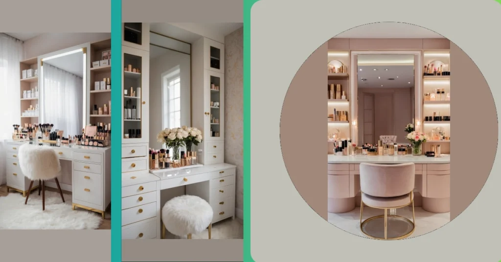 We live in a world where small space styling is an art form in and of itself. Think about how your luxury glam aspirational closet can be organized to rival any professional studio. We’re talking storage solutions that not only hold all the essentials but do so with flair. Vertical organizers, mirror cabinets, and chic trays can elevate your everyday makeup ritual to a pampering experience!