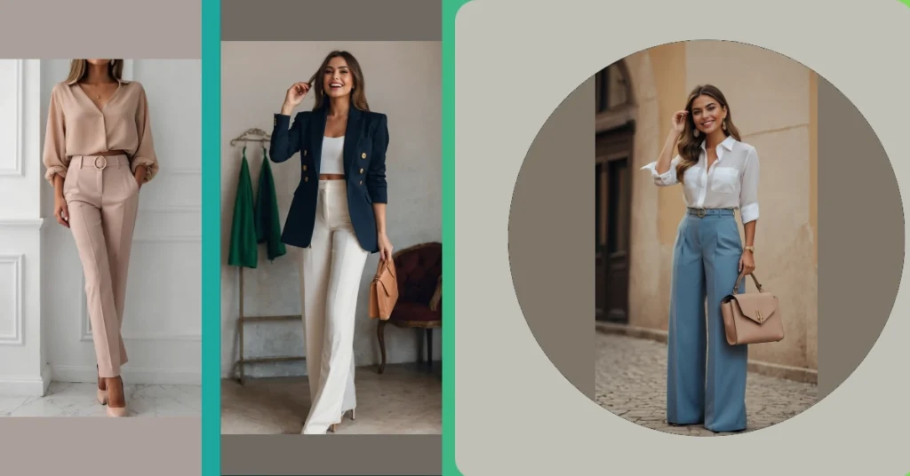 And let’s talk about those trousers specifically! These aren’t your typical lazy-day pants; these are the kind of “women trousers outfits” that make you feel like you could run a company meeting one minute and then perfectly balance your lunch tray the next. The way they fit just right, teamed with those sleek heels, shows you can definitely look super polished without sacrificing your cool factor. You’ll be walking around feeling like a secret superhero, just without the cape – because those amazing trousers are statement enough!