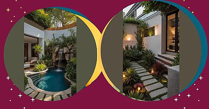 Forget about needing a giant backyard to feel fancy, because this picture is basically saying, ‘Hold my juice box!’ If you thought your small patch of outdoor space was only good for a single sad potted plant, get ready to rethink everything. This isn’t just a garden; it’s a secret level unlocked right outside your door, featuring a shimmering pool and a waterfall that’s probably cooler than any public fountain. It’s like someone took a slice of a five-star resort, shrunk it with a magic ray, and plopped it into the perfect cozy nook, proving even the tiniest spot can pack a seriously huge punch of awesome.