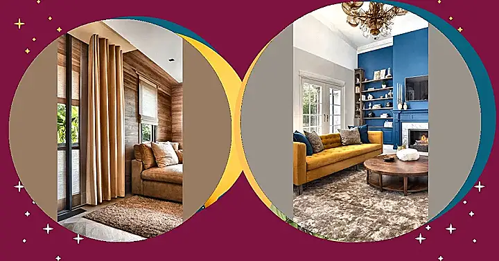 This living room totally gets that home decorating is all about mixing things up and having a blast! Who knew a sunshine-yellow couch and a super cool blue wall could look this awesome together? It’s like they’re best friends, creating a vibe that’s both chill and exciting, perfect for kicking back after a long day of homework (or, let’s be real, a long day of scrolling). Forget plain ol’ beige; this space proves you can absolutely make your room pop with colors that just make you grin. Plus, that fluffy rug looks so soft, you might just want to sprawl out on it and never, ever move.
