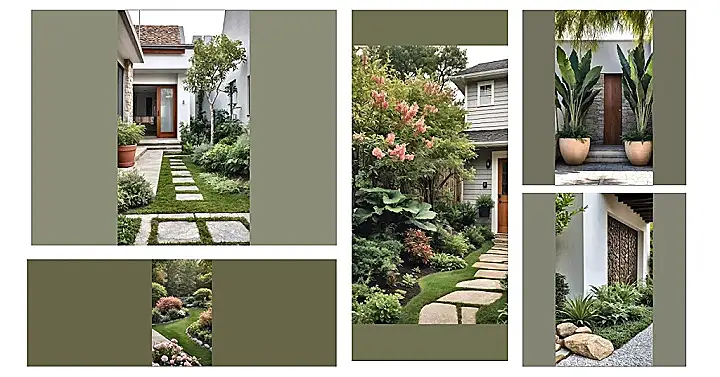 Follow those stepping stones and you’ll find yourself on a mini-adventure right to the front door. This vibrant little nook isn’t just a collection of plants; it’s a whole mood. With pops of fiery red foliage adding a bit of drama amidst all the lush greens, it’s like Mother Nature decided to use every crayon in her box for this spot. It’s proof that even if your outdoor space is more ‘postage stamp’ than ‘football field,’ you can create a super inviting and beautiful hideaway. Just try not to get lost in all that gorgeous greenery on your way inside!