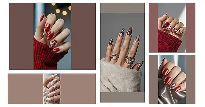 Let’s start with the classic autumn palette of reds and pinks that beautifully capture those crisp, cool days. But don’t limit yourself to just one color! Experiment with short nail designs that blend different shades, whimsical patterns, and a touch of nail art magic. Thinking simple? We’ll show you how easy it is to use contrasting colors to evoke the beauty of autumn leaves.
