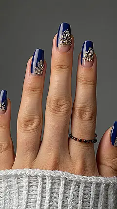Ready for Thanksgiving 2025? Your nails sure are! These aren’t your average, blend-into-the-background kind of manicure. With that gorgeous deep blue and those shimmering gold accents, complete with a little sparkle, you’re basically wearing tiny, wearable trophies for surviving another year. Just try not to accidentally dip these fabulous fingertips into the gravy boat – they’re too good to be mistaken for a fancy serving spoon. It’s all about bringing that extra sparkle to the holiday, making sure your hands are as thankful and glamorous as you are!