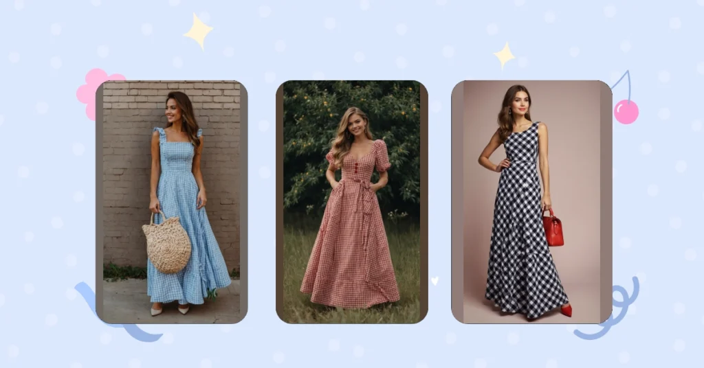 Now let’s drift into the beautiful ocean of blue! A blue gingham dress has that refreshing vibe, perfect for casual outings or sipping iced coffee on a sunny patio. Pair it with chic sandals or a trendy belt bag, and you’ve got an outfit that says, “I’m here to enjoy life!” Wave goodbye to drab summer fashion and say hello to chic!