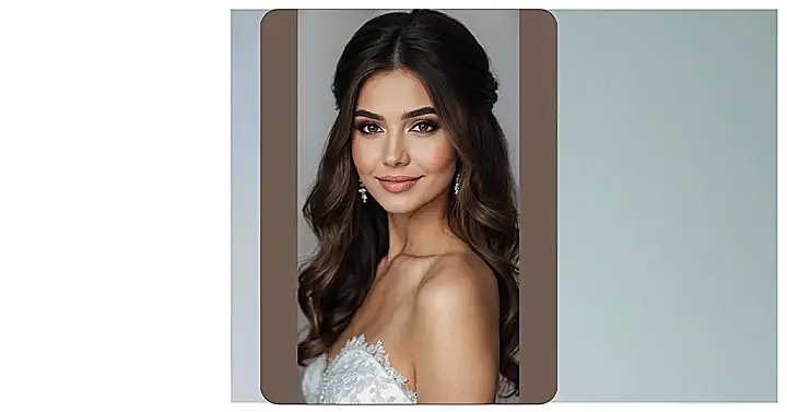 And let’s be real, those sparkling earrings are just begging to get tangled in all that lovely hair, but in the best way possible! Paired with her beautiful lacy dress, the whole look is pure wedding magic. It proves you don’t need complicated styles to look absolutely stunning and totally put-together. This look is all about keeping it natural, letting your hair shine, and probably saving you a few headaches (literally!) on your big day.