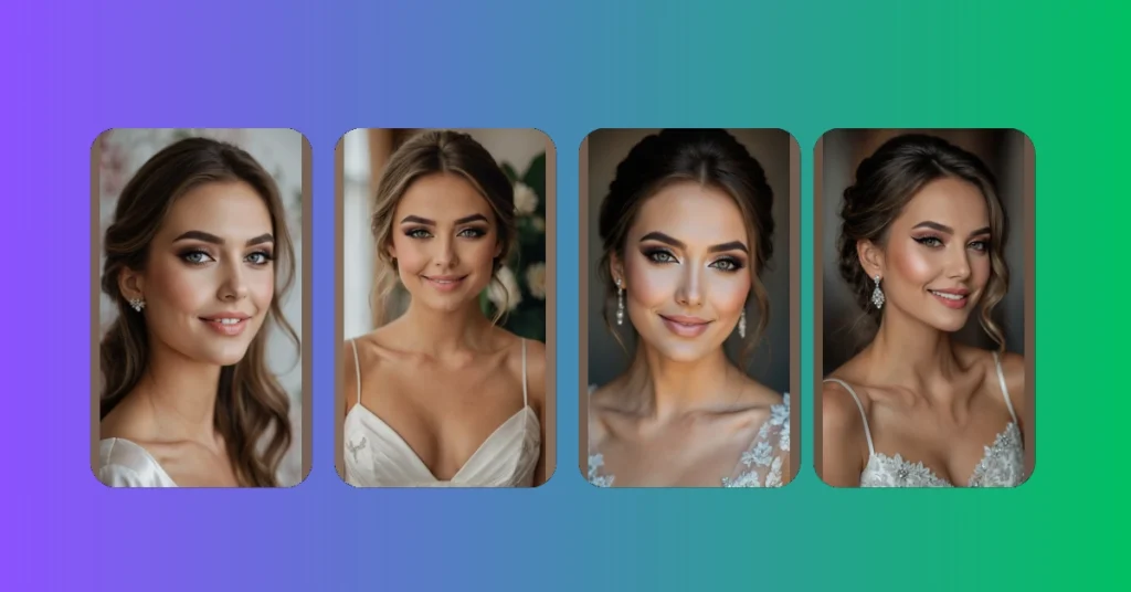 You know how sometimes you roll out of bed, look in the mirror, and think, “Who IS that?” Well, bridal makeup is basically the magical fairy godmother for that exact moment, but for your wedding day! Take a peek at our glowing bride here; her eyes are sparkling like she just found the last slice of pizza, and her cheekbones are so perfectly sculpted, they could be on a museum pedestal. It’s all about getting that picture-perfect look because, let’s be real, those wedding photos are going to live on everyone’s phone for ages, so you definitely want to nail that “happily ever after” vibe.