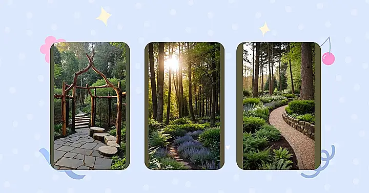 Walking down this cool stone path in a forest garden feels less like a regular garden stroll and more like you’ve just stumbled upon nature’s super secret clubhouse. Those big trees standing like bouncers at the entrance probably have a password, maybe something like “photosynthesis is my jam,” before they let you in. It’s the perfect spot to ditch your phone, pretend you’re exploring a lost world, or just find a quiet corner where even the squirrels seem too relaxed to bother you.