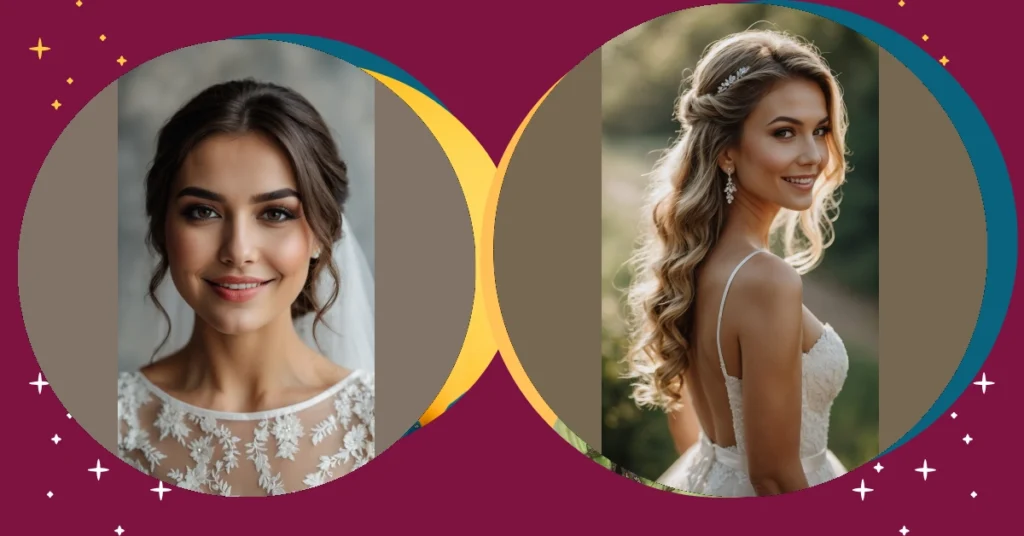 First up, a long-haired honey with luscious loose curls will have the crowd swooning. Wearing your hair down gives off major bridal vibes, especially when those delicate strands bounce with every step. If you want a little lift but still want those soft locks to shine through, half up half down hairstyles create a gorgeous balance that any bride could rock with poise and confidence.