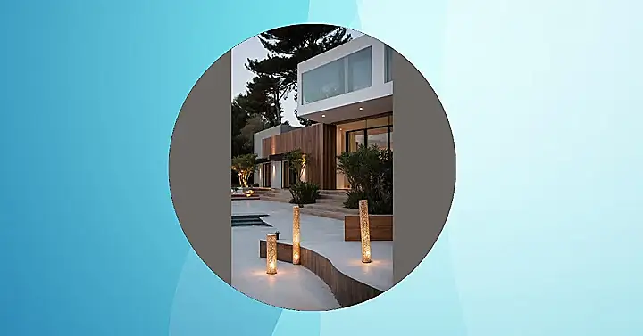Step into this picture and tell me you’re not suddenly craving a warm drink by the pool, even if it’s totally December outside! Those cool, cylinder-shaped lights with their glowy patterns are basically telling winter to take a hike. They’re like tiny, stylish beacons of warmth, making everything feel super cozy and inviting, definitely not like the kind of December where your nose feels like an icicle. It’s almost unfair how good these outdoor lights make the whole place look, like they bottled up sunshine just for the evening.
