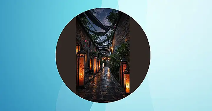 Let’s be real, your current phone background is probably a blurry selfie or a default wallpaper that screams ‘I tried once, maybe.’ But feast your eyes on this! This isn’t just an alley; it’s a portal to pure coolness, practically begging to be your new digital hangout spot. With those super neat lanterns casting a warm, orangey glow and walls that look like they’ve got secrets carved into them, it’s like stepping into a fantasy movie set. You could totally fool your friends into thinking you’re doing your homework in a magical ancient temple, rather than, you know, your actual bedroom.