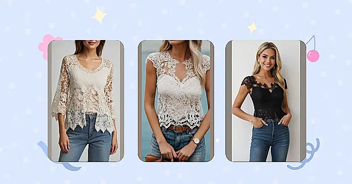 Check out this amazing lace top outfit! That light blue top with the intricate white lace around the neck is basically a fashion cheat code for looking effortlessly cool. It’s like you woke up, threw this on, and instantly looked ready for a fun day, even if your biggest plan is just to conquer the snack drawer. This top knows how to bring the fancy vibes without making you feel like you’re trying too hard – it’s all about that perfect balance of comfy and chic!