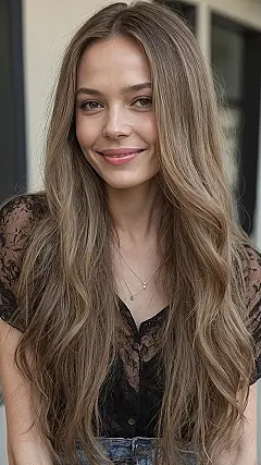 You know that feeling when your hair just *gets* it? Like it understands the assignment and is having a great hair day all on its own? This awesome look totally nails it with that super long, flowing hair that seems to have a mind of its own – in the best way possible! It’s like her hair decided, “Today, I’m going for maximum chill vibes and effortless cool.” Plus, you can tell it’s not just one big curtain; those subtle layers are doing some heavy lifting, making sure her locks aren’t just long, but also have that bounce and movement, like they’re ready for a hair flip competition (which she would totally win, by the way).