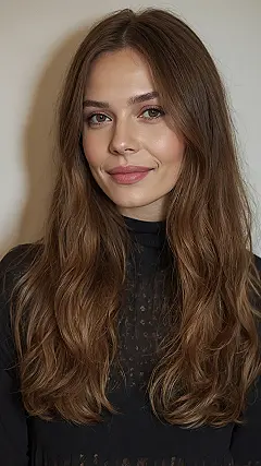 Check out that awesome hair! It’s not just long; it’s got that fantastic bounce and flow, almost like it’s doing a happy dance all on its own. That’s the secret power of a well-done layered haircut! Instead of your hair just hanging there, looking a bit flat, layers add all this cool movement and volume, making it look super lively. See how it beautifully frames her friendly smile? It’s like her hair is adding extra sparkle to her whole radiant look!