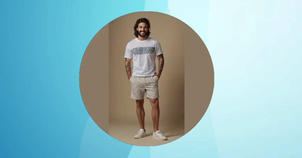 When the sun’s out and your legs have been doing all the heavy lifting (or just existing awesomely), what better way to celebrate than with a fantastic pair of men’s shorts? Forget about being trapped in long pants; these shorts, like the ones our buddy here is rocking, are all about letting your knees catch some rays and your style shine. Plus, who needs complicated fashion rules when you can look this effortlessly cool just by choosing the right pair to conquer your day, whether it’s an epic ice cream run or just chilling?