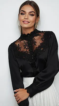 This black lace top outfit is basically telling everyone you’ve got your life together, even if your morning started with a frantic search for matching socks. With all that gorgeous, intricate lace, it’s got a super fancy-but-fun vibe that makes you look ready for a secret elegant society meeting or maybe just acing that history presentation. The silky fabric is so smooth, you might just forget you’re wearing something that screams “fashion icon” and think you’re still in your comfiest PJs.