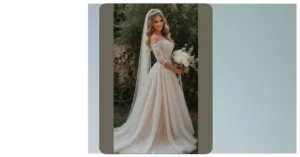 That little bit of sparkle wrapped around her head? Totally adds to the whole enchanting look. It’s like pixie dust but make it elegant for a wedding! Plus, having your hair styled up like that keeps it perfectly in place whether you’re floating down the aisle or busting out those dance moves later. It’s the perfect blend of looking amazing and being ready for all the fun, fairy-tale adventures of your big day.