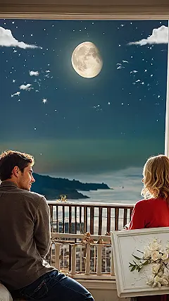 If you’re looking for the ultimate ‘couple wallpaper’ that screams ‘we’re totally in sync and possibly moonlight as fairytale characters,’ then look no further! This dreamy picture is perfect for setting the mood on your phone or computer, making all your apps feel a bit more magical. Plus, it’s pretty much guaranteed to make your friends wonder if you secretly just got engaged under a cosmic disco ball. Who knew a couple, a rose, and a giant moon could be such a vibe?