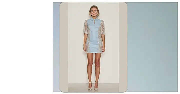 But wait, there’s more! Those intricate lace details on the sleeves and sides are like the secret sparkle of the whole outfit, making it feel extra special and totally not basic. It’s the kind of mini shirt dress that’s ready for anything, whether you’re dazzling at a daytime party or just feeling amazing running errands. It’s got that fun, flirty vibe without even trying too hard, proving that a dress can be both fancy and a whole lot of fun.