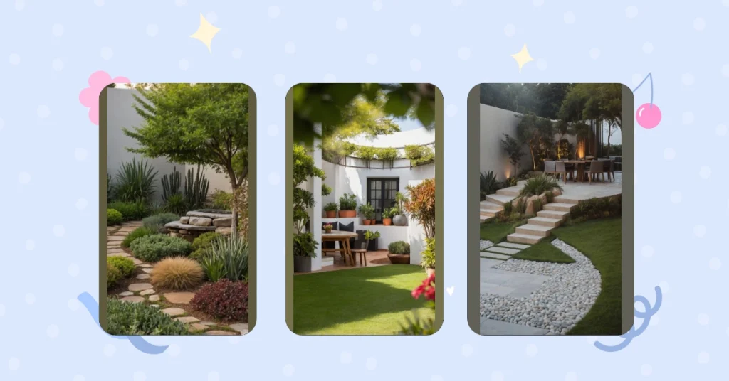 That fancy dining spot up top isn’t just for show, you know. It’s basically an open invitation to host the most chill outdoor hangout (or maybe even convince your parents to let you have pizza night outside!). The glowing lights at night make it look like something straight out of a movie, minus the drama, and totally ready for your next Instagram story. And those cool pebble paths weaving through the grass? They’re like nature’s way of saying, “Walk this way to awesome,” adding just the right amount of fun texture without being, you know, too much.