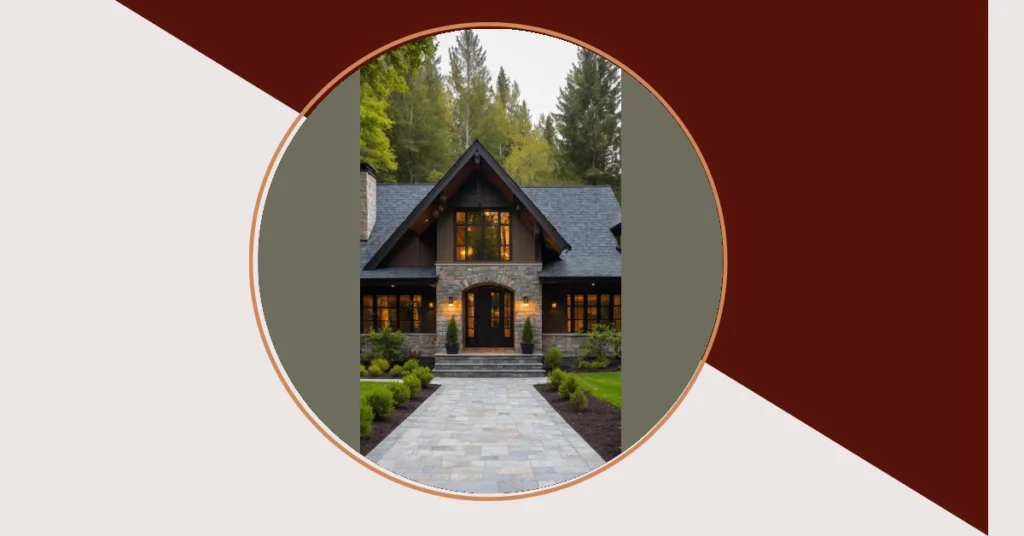Walk up to this place, and you might think it’s a house that accidentally got an ‘A’ in style class. It’s like a classic craftsman house plan decided to hit the gym and get a modern makeover! You’ve got these cool, solid stone walls chilling next to sleek black panels, which basically tells everyone, ‘Yep, I’m fancy, but also super cozy inside.’ And those steps? They’re practically glowing, leading you straight to a wooden front porch that just begs you to kick off your shoes and hang out. It’s definitely not your average cookie-cutter home.