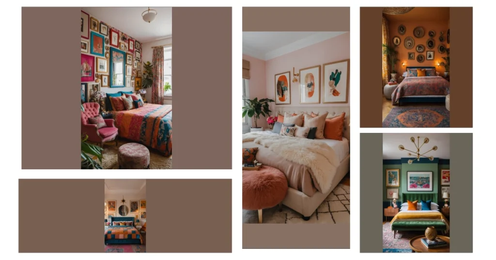 Get ready to feast your eyes because this room is basically a party where every single pattern, color, and piece of art decided to show up! This isn’t your average ‘keep it simple’ bedroom; it’s a full-on explosion of personality that screams, ‘More is more, and then some!’ Just look at that wall – it’s like a museum decided to live in a bedroom, with every frame telling its own super cool story. You could probably spend an entire afternoon just exploring all the awesome details in here!