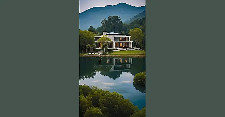 Looking at the way the house lights up the evening and perfectly reflects in that glassy lake, it feels almost magical. You’d have the coolest backyard ever, perfect for late-night stargazing (no city lights to mess that up!). On the flip side, living this deep in a forest mansion probably means your biggest excitement would be the local deer family critiquing your lawn work. And don’t even get me started on the pizza delivery situation; you’d be lucky if they even made it past the “Are you sure this isn’t just a very elaborate camping trip?” stage. Still, a pretty sweet spot for some serious quiet time, or perhaps a massive game of hide-and-seek.