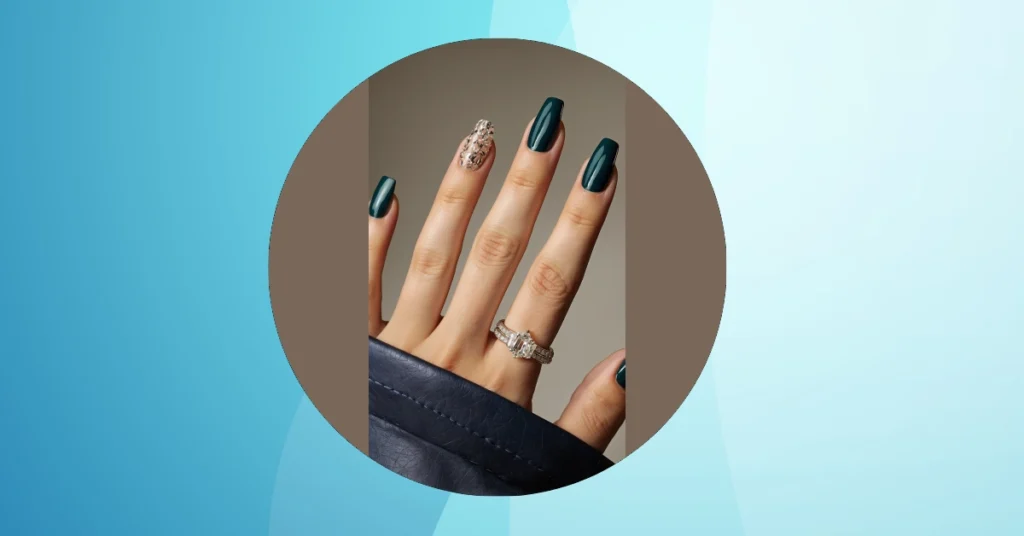 Get ready to seriously impress with nails that scream ‘holiday chic’ without actually screaming – because that would be awkward. That deep, sparkly emerald green? It’s like wrapping your fingers in fancy velvet ribbons, ready for all the hot chocolate and gift-exchanging December throws your way. Plus, that one accent nail with the super cool gold design? It’s basically saying, “Yeah, I know I’m fabulous,” and frankly, we totally agree.